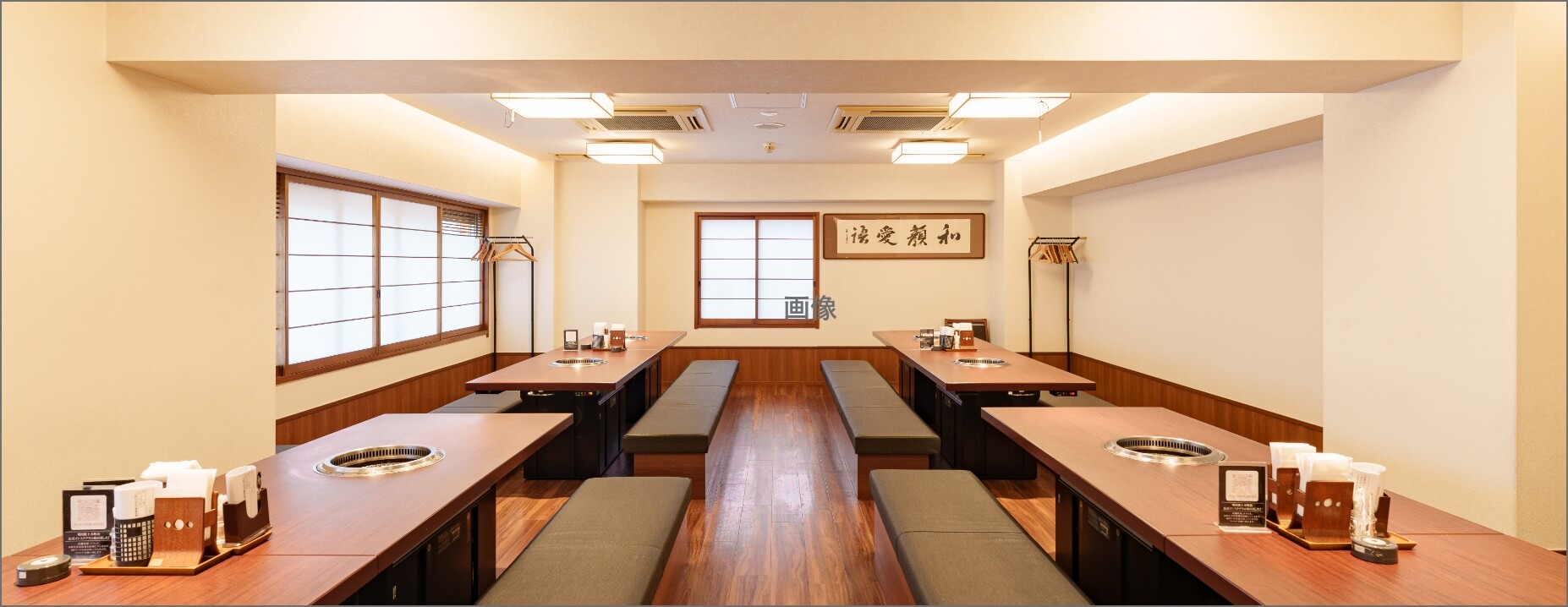 各種パーティに、また商談にも最適。落ち着いたムードの上本町店。従来の焼肉店と趣を異にする、ハイグレードな雰囲気をお楽しみいただけます。